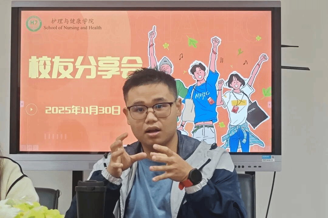 随后,马嘉晖员工结合其在医院的繁忙工作经历及后续考取中山大学研究生的选择,分享了关于职业韧性与发展多元化的见解。他同样鼓励学弟学妹们通过就业实践深入了解护理行业,再决定深造方向。他特别提醒同学们拓宽视野,并建议大家积极留意政策与市场动态。