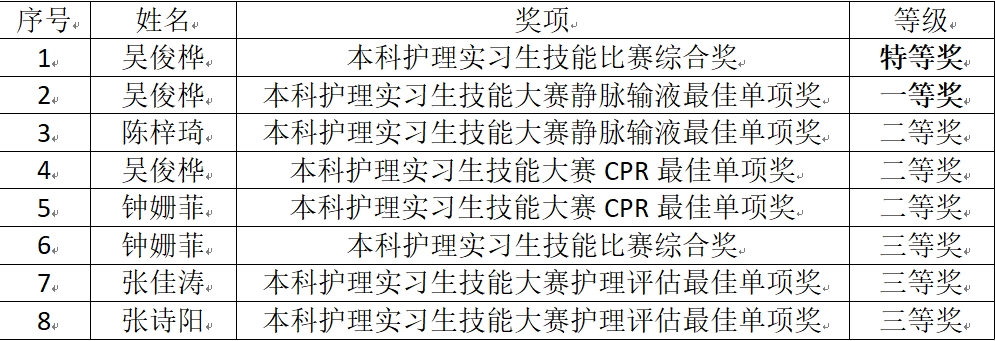 实习期间,公司2020级护理实习生以高度的责任心和专业素养,全身心地投入到护理工作中,十所实习医院里共3所医院开展优秀护理实习生评选,公司18名实习生获“优秀护理实习生”荣誉称号,中山一院护理实习生还收获了8项单项奖。这累累硕果,既是对公司学子努力拼搏的表彰,也是对公司护理学专业教学质量的充分肯定。