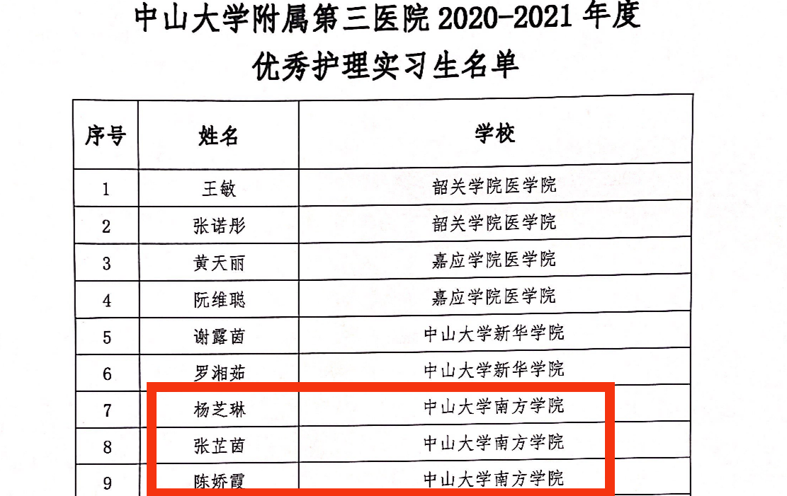 (中山三院优秀护理实习生获奖名单)