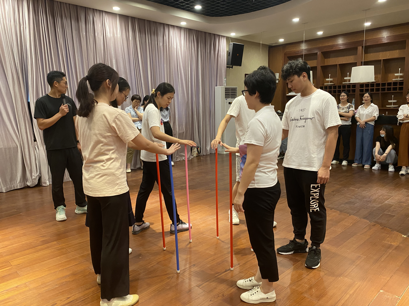 活动开始,老师们相互按摩,放松肌肉,快速进入游戏状态。破冰活动由按摩操、左抓右逃、青蛙王子组成。