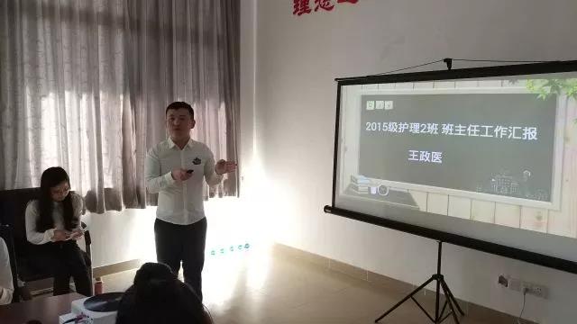 会议开始,陈华丽老师为大会致辞,激励在场教师更加积极投身于教育工作岗位当中;随后,各位教师班主任分别从班级员工的平时学习、班会开展、活动参与积极性等多方面进行工作总结。老师们因材施教,尽其所能开展员工工作。例如林晓兰老师密切关注14级同学的实习情况,做好信息传递和资料收集工作;王政医老师在15级2班进行大学英语四级考试前一个月集中他们班的同学进行英语自习并取得了良好的成绩;吴圆荣老师举办趣味班会让老师与16级员工间距离拉近。最后,由2013级实习医院负责老师进行总结。每位负责老师都会向医院护理部老师了解实习生情况,协助解决实习中的问题,老师们均表示十分满意实习生们在医院里面的表现。