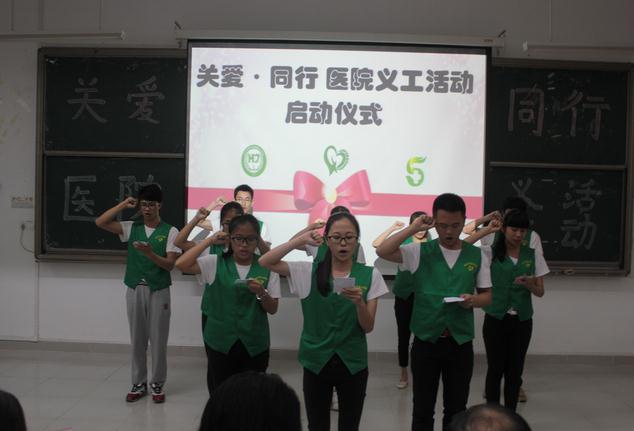 最后,健康与护理系穿着具有特色义工服的代表们进行了绘声绘色的义工宣誓,在现场热烈的掌声中,“关爱?同行”医院义工活动启动仪式最终圆满结束。